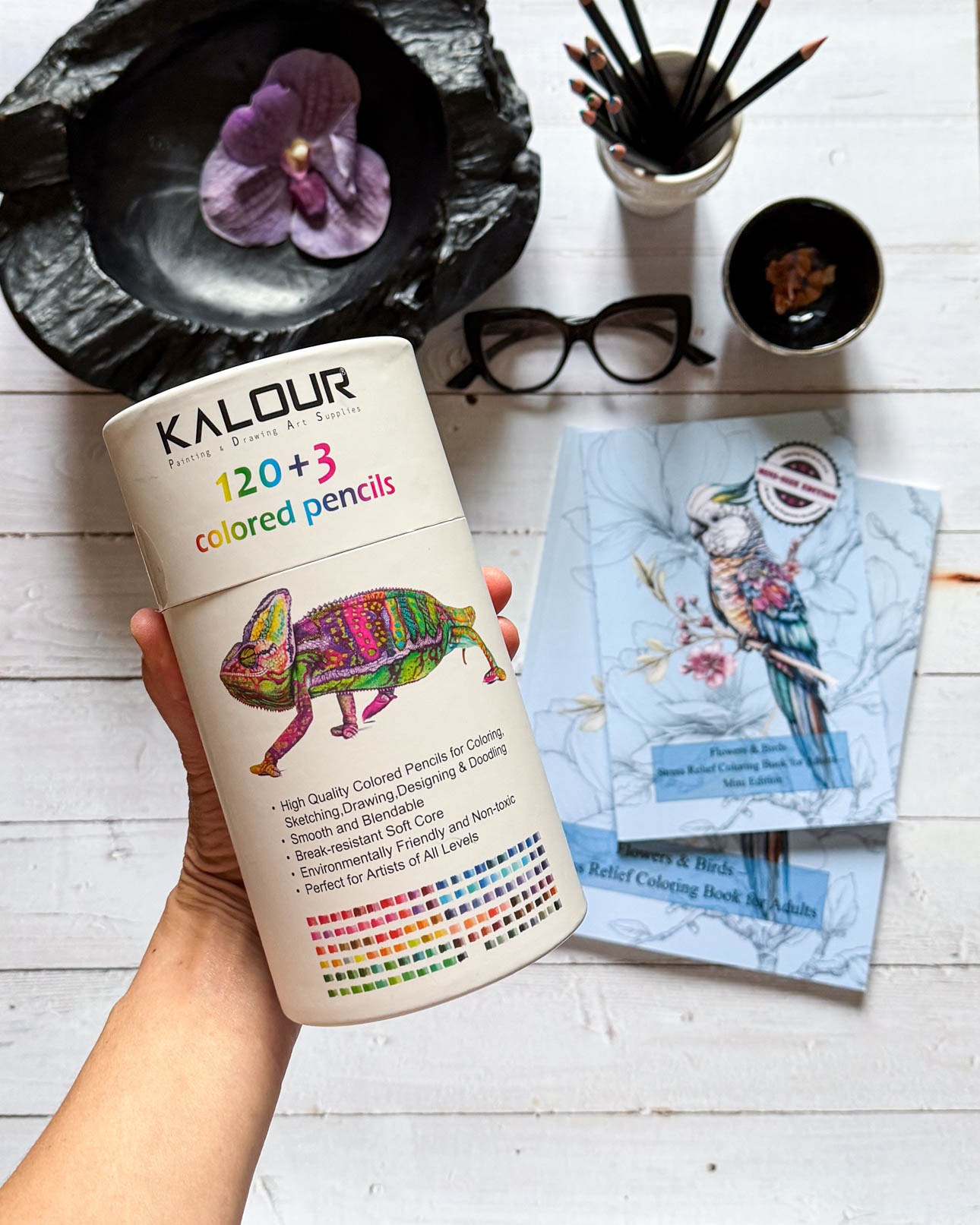 Die Kalour Pro Buntstifte sind mit ihren 120 leuchtenden Farben einfach großartig – besonders für alle, die wie ich gerade erst das Ausmalen für sich entdeckt haben. Die Farbauswahl ist richtig schön und groß, die weichen, hochpigmentierten Kerne lassen sich leicht anspitzen und sorgen beim Malen für tolle Ergebnisse.