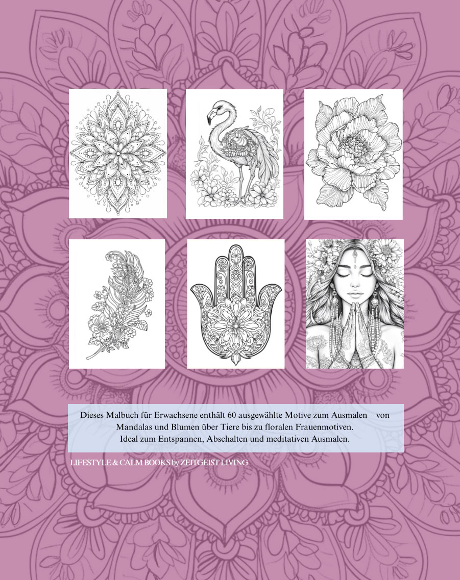 • 60 abwechslungsreiche Ausmalmotive – von harmonischen Mandalas bis zu detailreichen Blumen und Ornamenten
