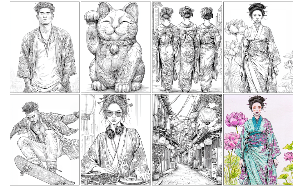 • 32 einzigartige Ausmalmotive – inspiriert von Streetstyle, Tradition und japanischer Popkultur