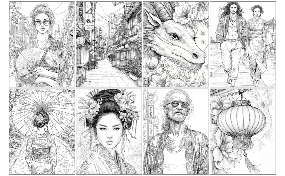 Tauche ein in die faszinierende Welt des modernen Japans – mit diesem außergewöhnlichen Malbuch für Erwachsene!